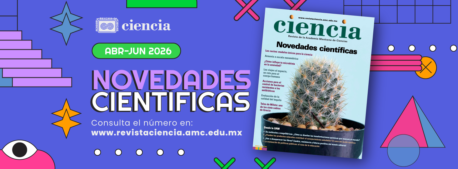Abril-Junio 2026 vol. 77-2 Portada Indice Los cactus: modelos únicos para la ciencia Los viajes al espacio, un reto para el cuerpo humano ¿Cómo influye tu microbiota en la ansiedad? Acciones para el control de bacterias resistentes a los antibióticos Metástasis: células cancerosas que no respetan fronteras Los microARN, reguladores y controladores de funciones biológicas El misterioso mundo de los glicoARN Cómete los tacos, ¡pero con salsa! El mundo nanoscópico de los virus a través de la luz Armonía a escala nanométrica La memoria episódica es más que un cúmulo de recuerdos ¿Todo es medible? La métrica de las cosas Evaluación de la calidad del tequila Aprovechamiento de efluentes vinícolas para generar nuevos productos El desarrollo orientado al transporte (DOT) y su aplicación en México Tales de Mileto: uno de los siete sabios de Grecia De moléculas a megafábricas. ¿Cómo se diseñan las transformaciones químicas que mueven el mundo? Desde las redes Noticias de la AMC Desde el Comité Editorial